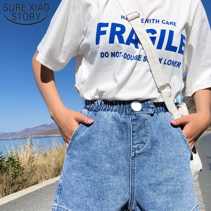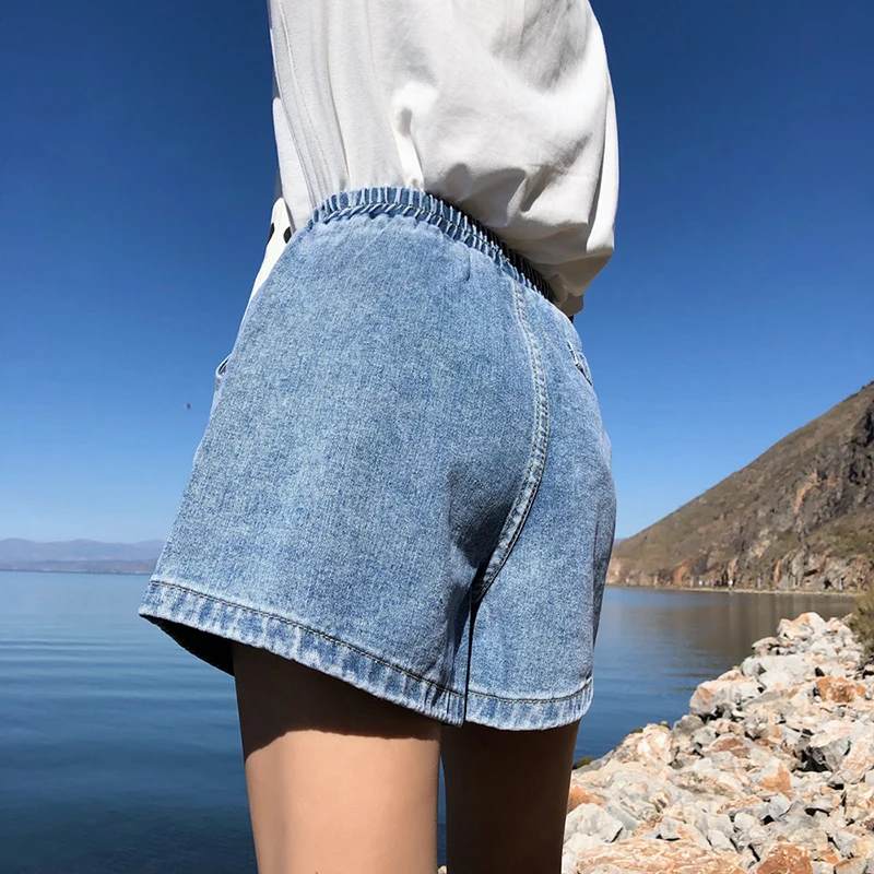 remarkable 2019 New Arrival High Elastic Waist Wide Leg Shorts Jeans Black Blue White Pink Short Femme Summer
