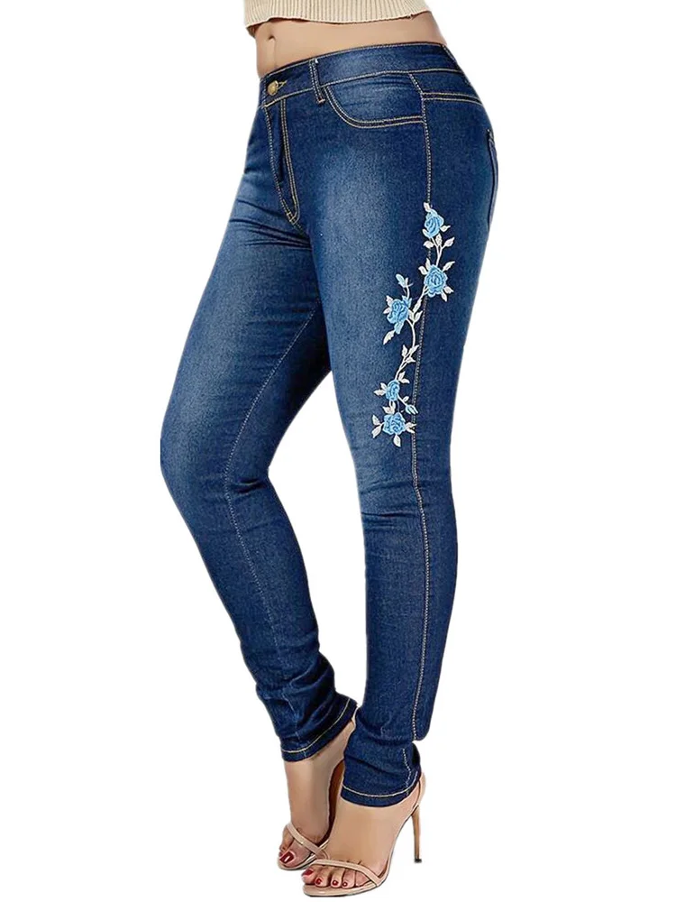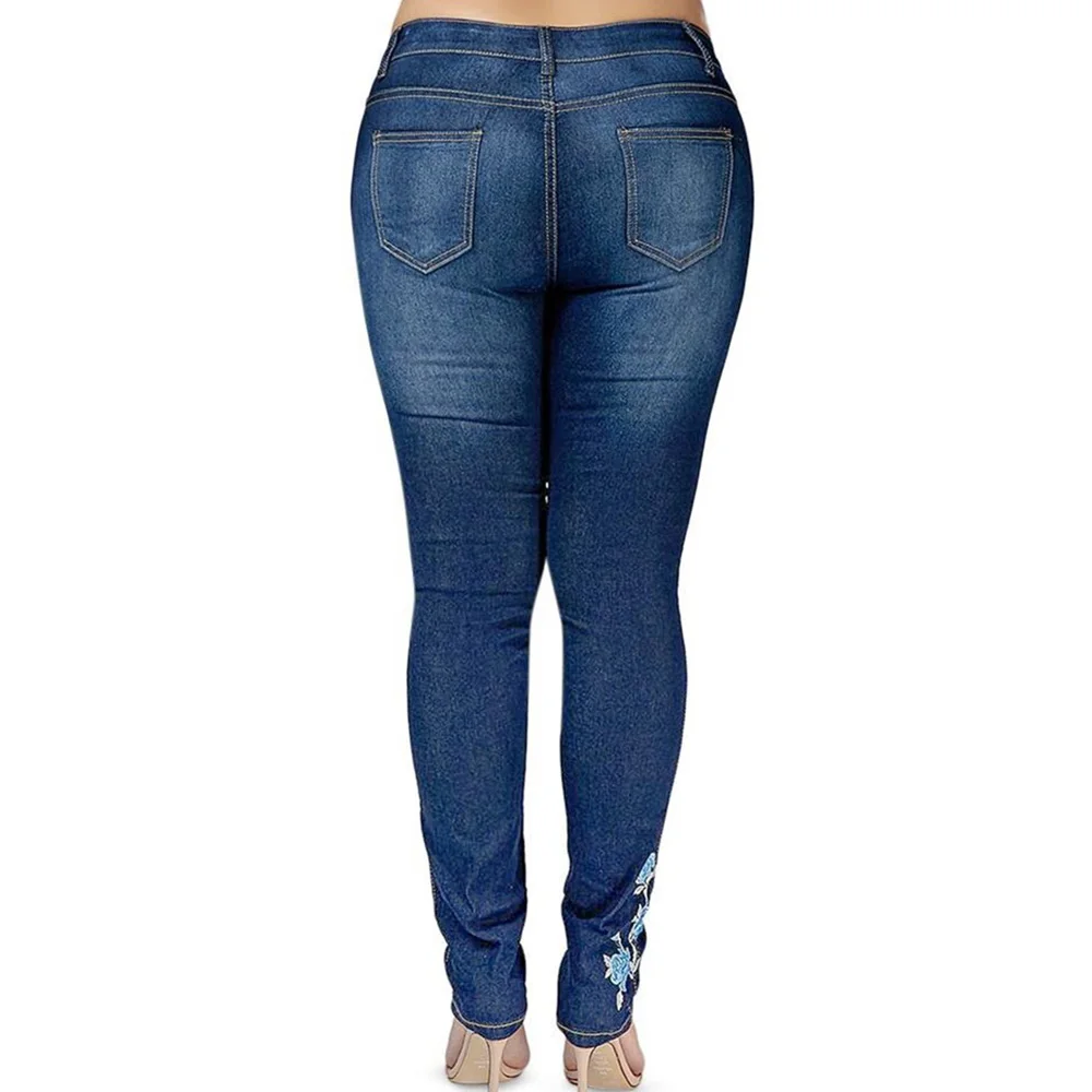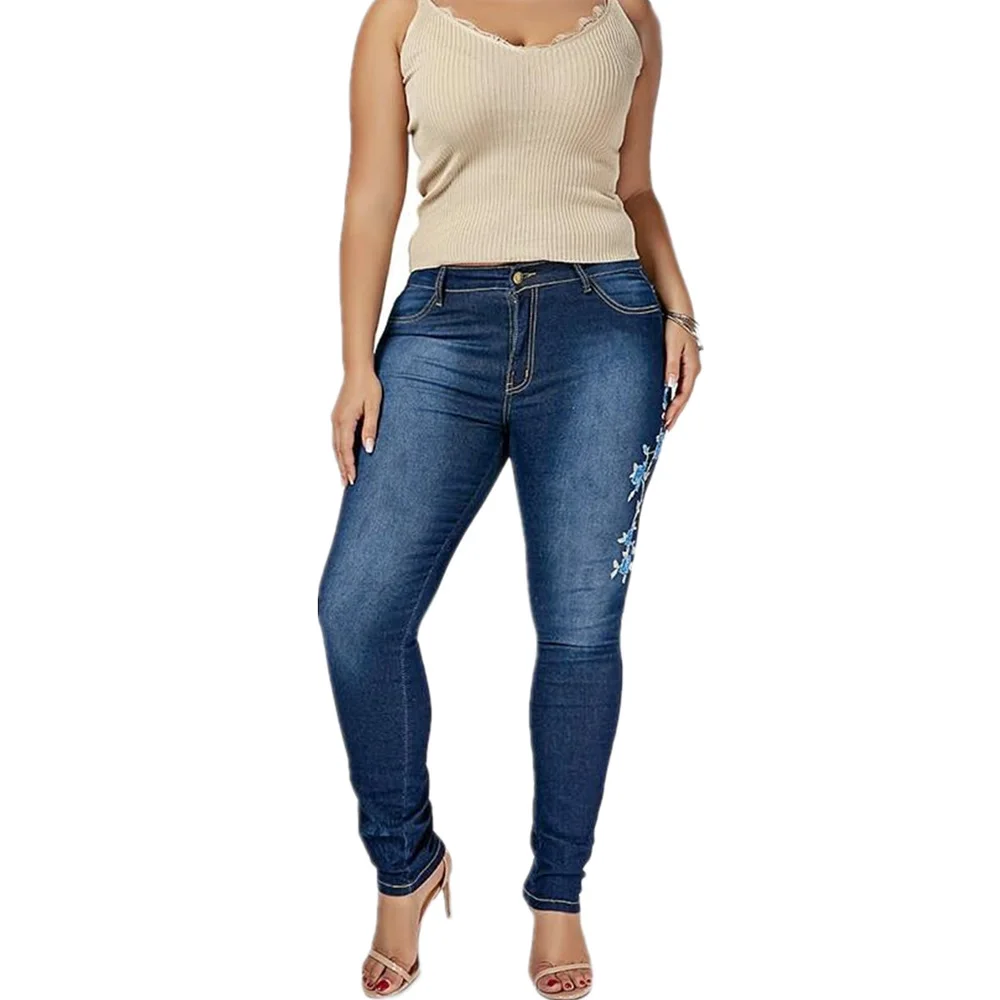 low cost Wipalo L-5XL Plus Size Autumn Winter Women Pants Stretch Embroidered Jeans For Women Elastic Flower