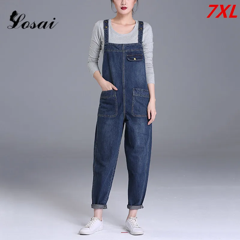 lower price Plus Size 7XL Women Denim Jumpsuit 2019 Ladies Loose Jeans Rompers Female Casual Hole Denim Jumpsui